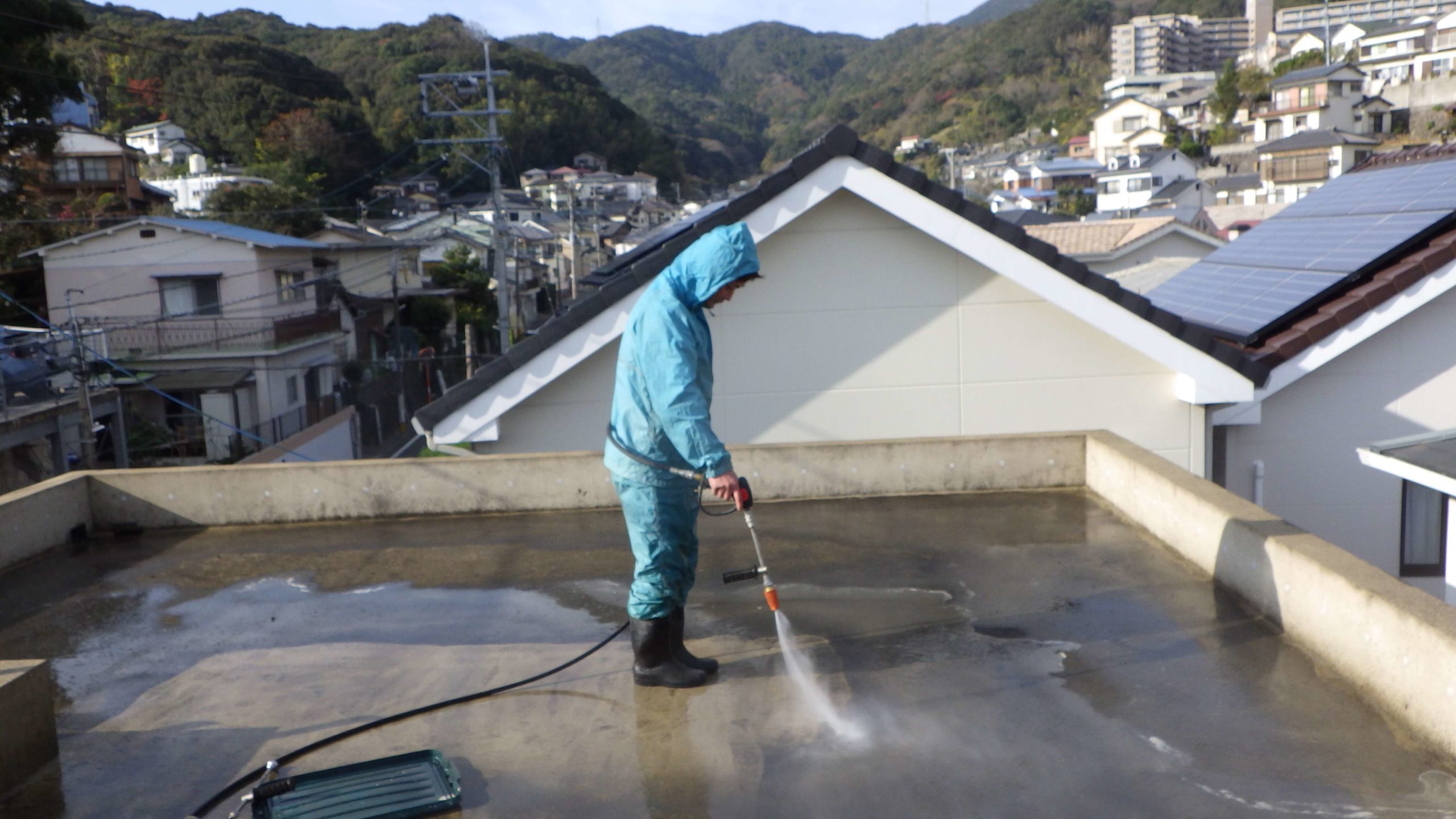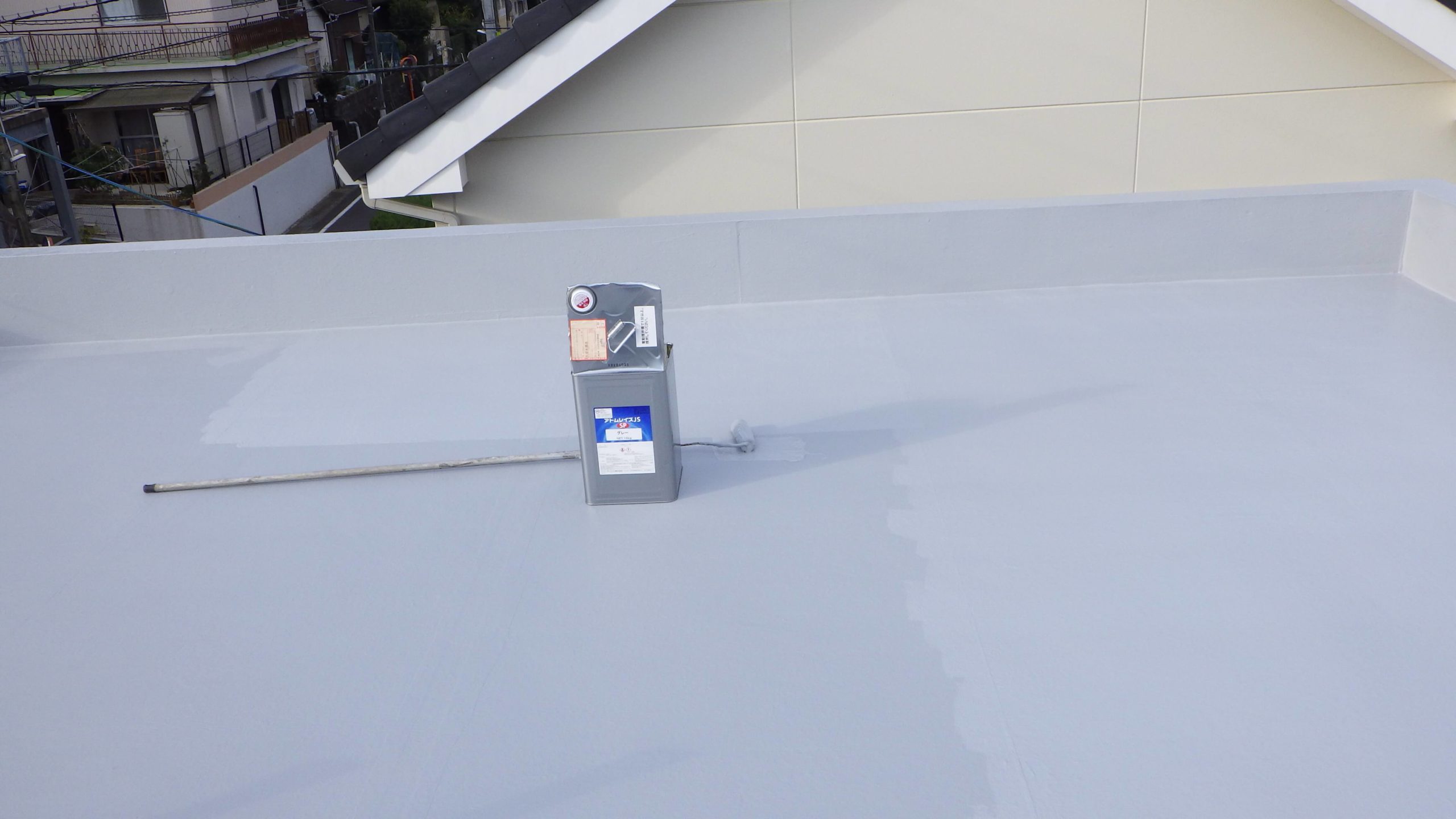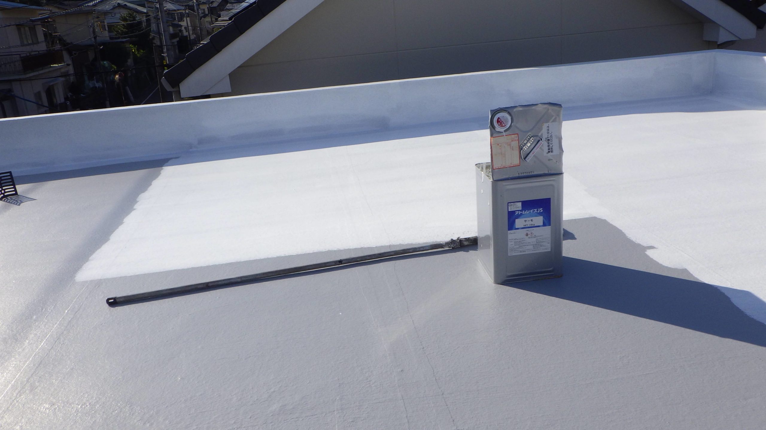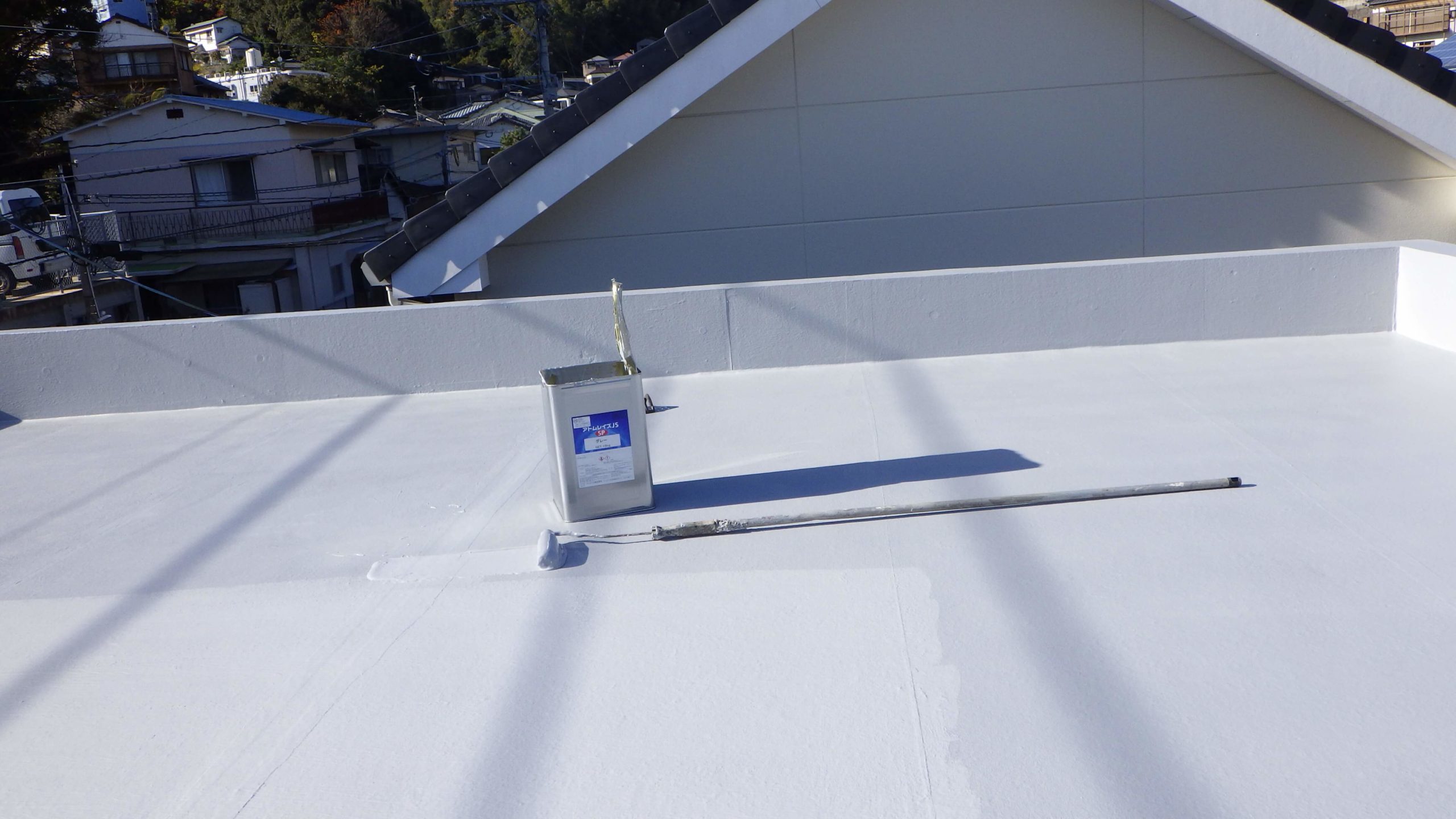 遮熱防水で水よ熱から守ります。施工も、7回塗り重ねて完成。