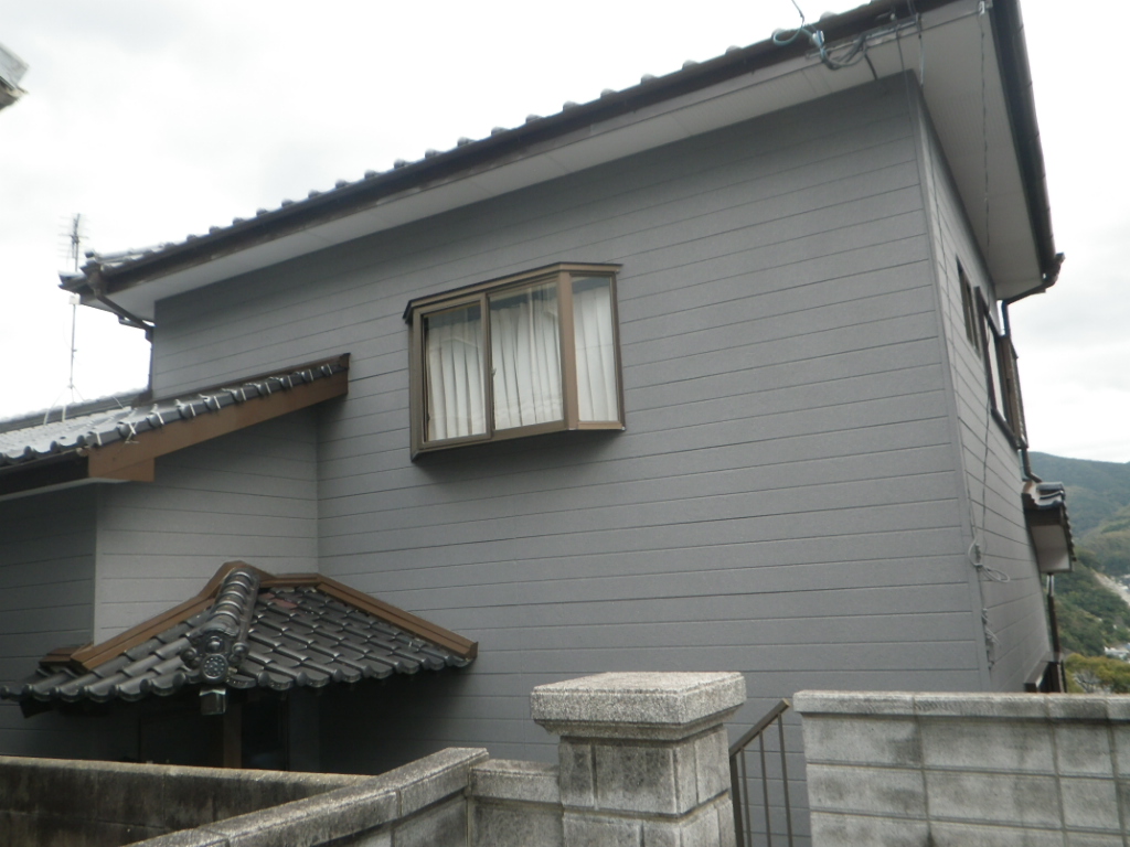 外壁 長崎市三原町Ⅿ様邸 外壁塗装が剝がれて劣化が進んでいました。塗膜の段差をわからなくするため、下地補修して石材塗料を塗装しました。高級感あふれる新築になりました。期間も10日で終わりお客様に大変喜んでいただきました。これからもよろしくお願いします。 BEFORE AFTER